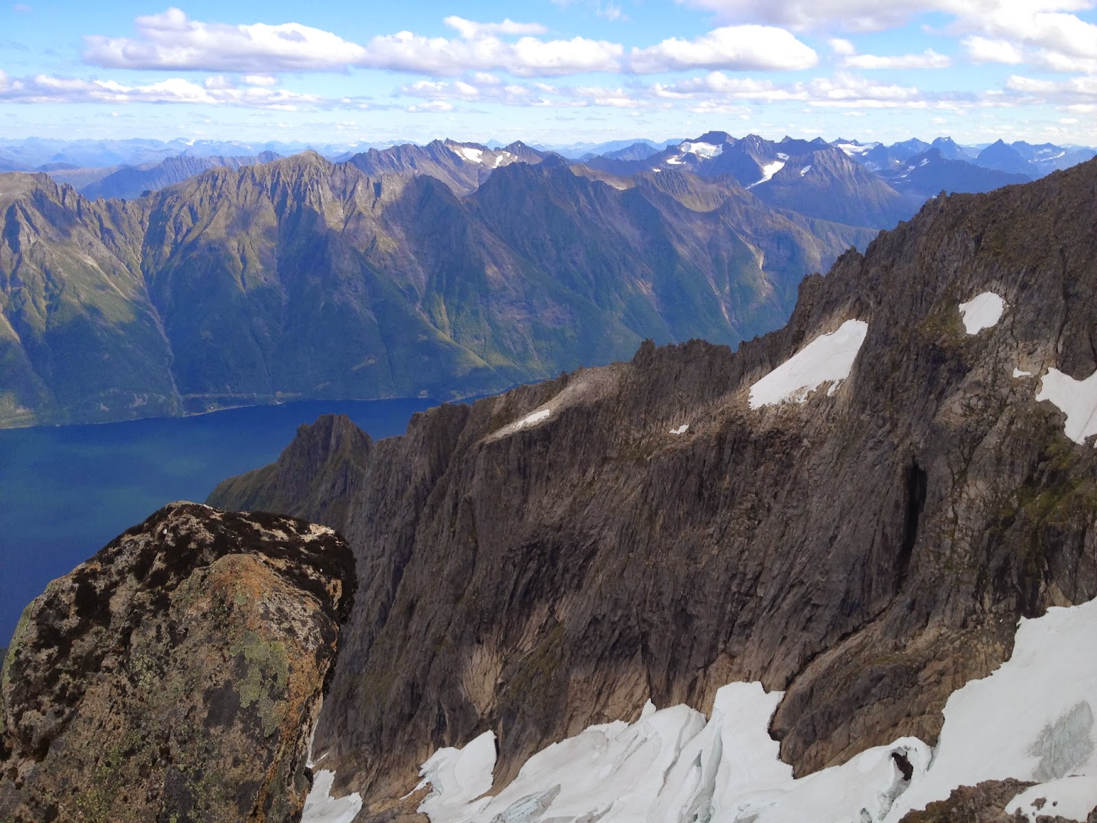 Flott utsikt mot Storfjorden og utløpet av Hjørundfjorden, deler av Ålesund og Sula kan skimtes til venstre, Hundeidvik til høyre :-)